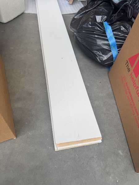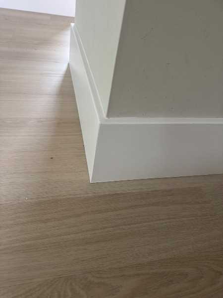 5-14" tall 16' long. 4 pieces = 64 linear feet. Mdf primed. Slightly rounded top edge. I have a chop saw to cut boards shorter for transport