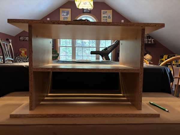 Shelf unit with two shelves.  Unit dimensions: 2'1" length x 1'6" width x 1'4" height