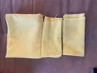 One yellow table cloth 50" x 70" plus two napkins. Please state pickup time.