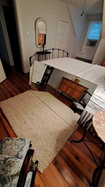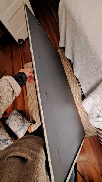 Large bathroom 'contractor's' mirror 58"W x 33 1/2"H x 1/8" thick. Previously hung above a two sink vanity. Very good condition - no chips or scratches, a little heavy. Have hardware (screws & plastic pieces) used to do initial install.