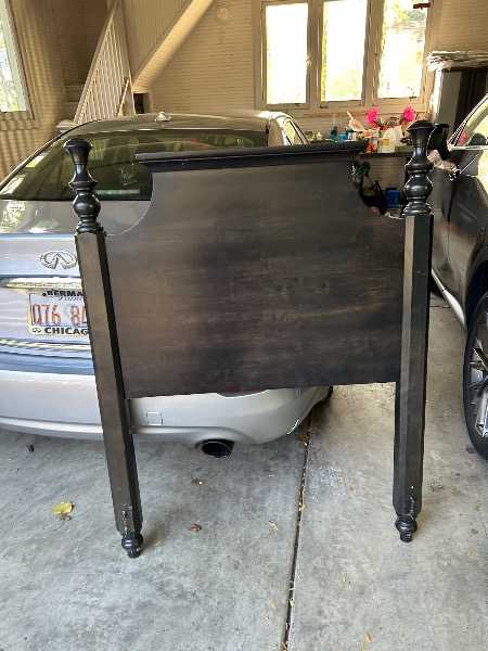 Excellent condition. Twin solid wood, expresso stain color headboard (only), 52 inches tall, 40 inches wide Holes for attaching a bedframe on sides. Headboard has 12 inch posts on either side of a scrolled back. Could be painted as well to look like this Pottery Barn bed Madeline bed headboard for a girls room. https://assets.pkimgs.com/pkimgs/ab/images/i/202535/0020/images/tips-and-ideas/articles/pdf/madeline_collection.pdf. Porch pick up central OP. 708-528-1393 for pics.