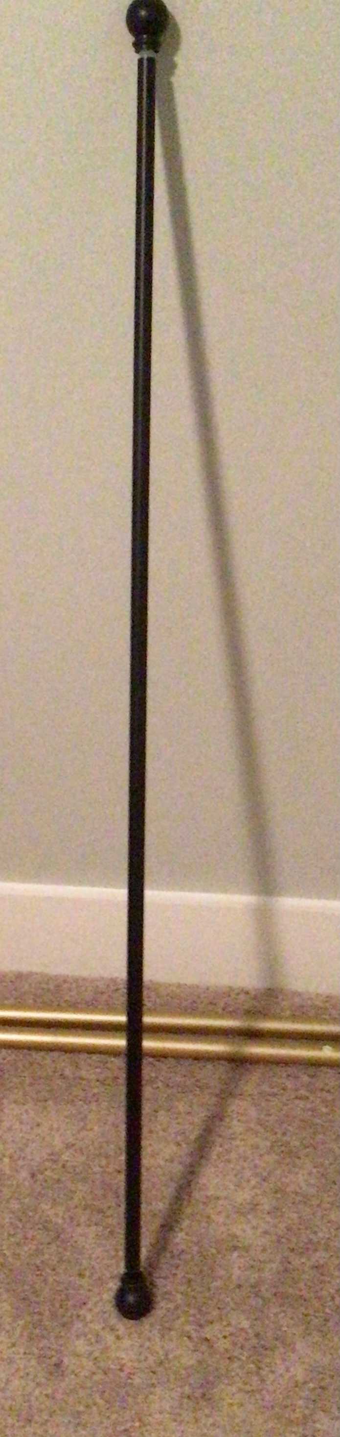 Black metal curtain Rod. When collapsed, measures 48". Fully open , measures to 86". Easy front door pick -up in Apex or I can drop off to you in Apex. See pic. Thank you.