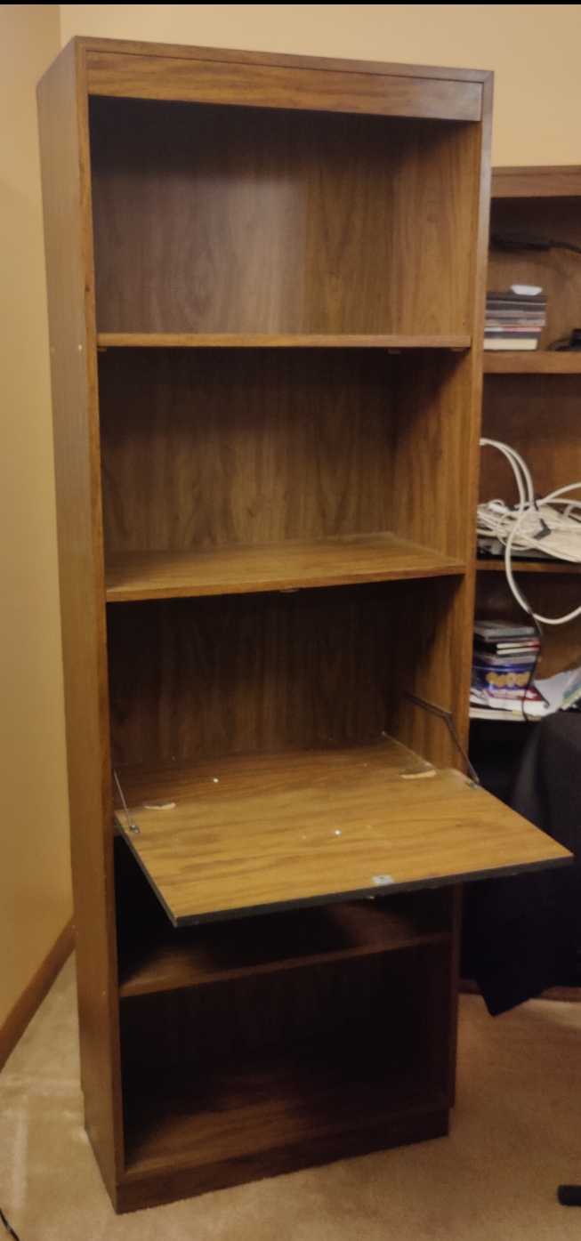 Looking for a new home for a tall bookshelf with dimensions of 25 inches (width) x 72 inches (height) x 11.5 inches (depth). There are five shelves. It is more than 30 years old and not in perfect shape, but still functional. Made of particle board, not solid wood. We hate to junk it, so hopefully someone else could use it. Please send a message if interested. Thanks.