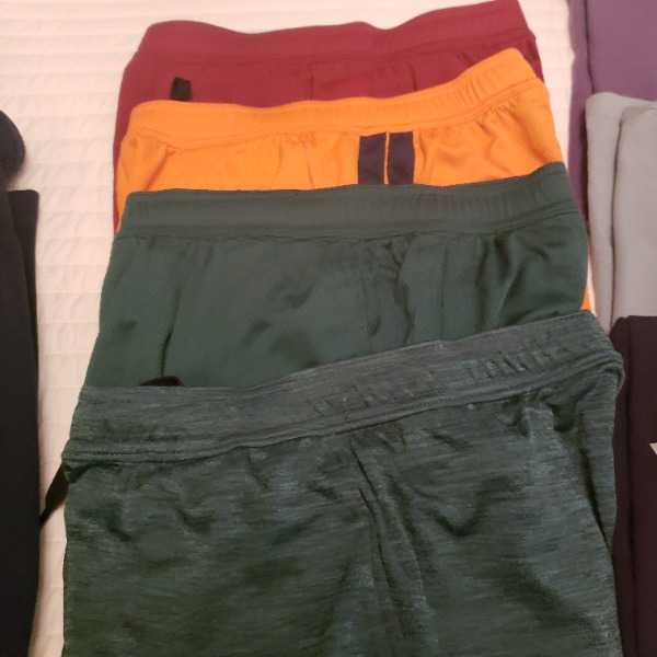 Please note that the blue and white Adidas shirt has some slight staining around the collar and the athletic shorts have slight wear and tear on the backside just due to play (but no rips or holes).