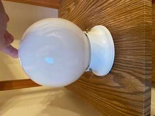 Base diameter is 5". In good condition. Just replaced it with other fixture.