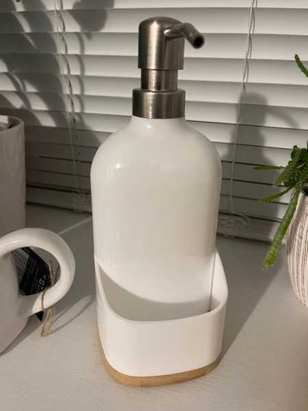 Soap-dispensing portion has never been used/filled. Sponge-holder portion of front has been used