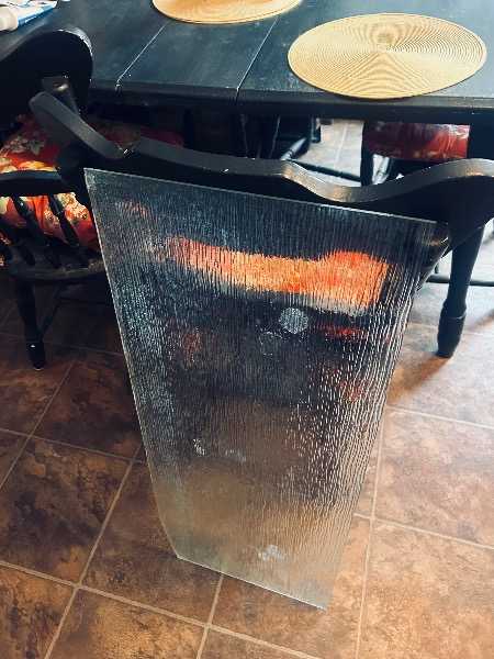 One piece of 3ft x 13in frosted glass to give away to artisan doing stained glass.