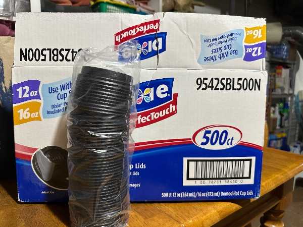 6 unopened sleeves of Domed Hot Cup Lids that fit both 12oz and 16oz Insulated Paper Hot Cups. Each sleeve has 50 lids