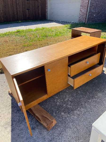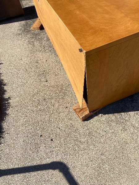 21”D x 69”L x 24” H in fairly good condition(though the back panel on one side has come unstapled.  Need two people to lift and a truck or long SUV. On the driveway.