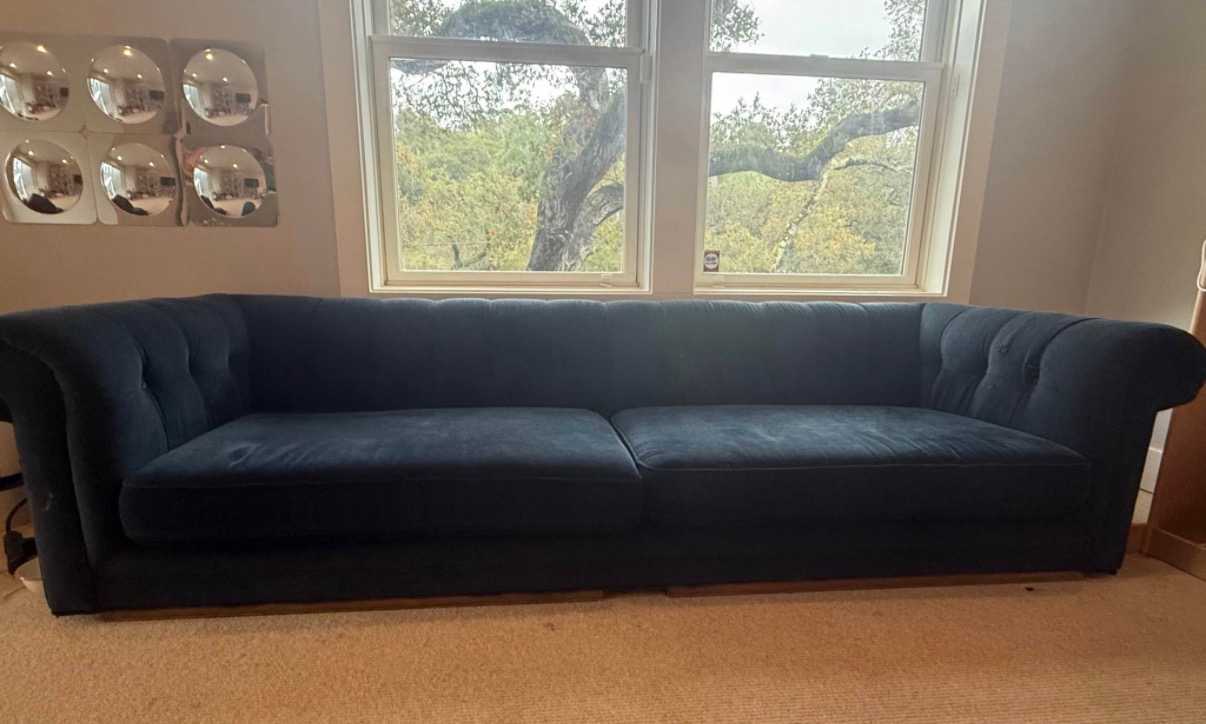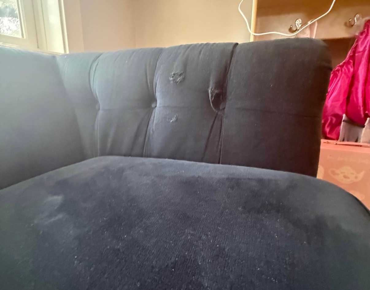 There is a cut in the couch but it can be covered up by pillows. Originally paid $2500+ for it. I also have the feet for the couch (not pictured).