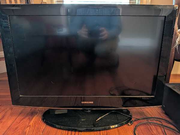 The television is about 20 years old but still works perfectly.  720p resolution on a 32" screen.  Includes the stand and remote.