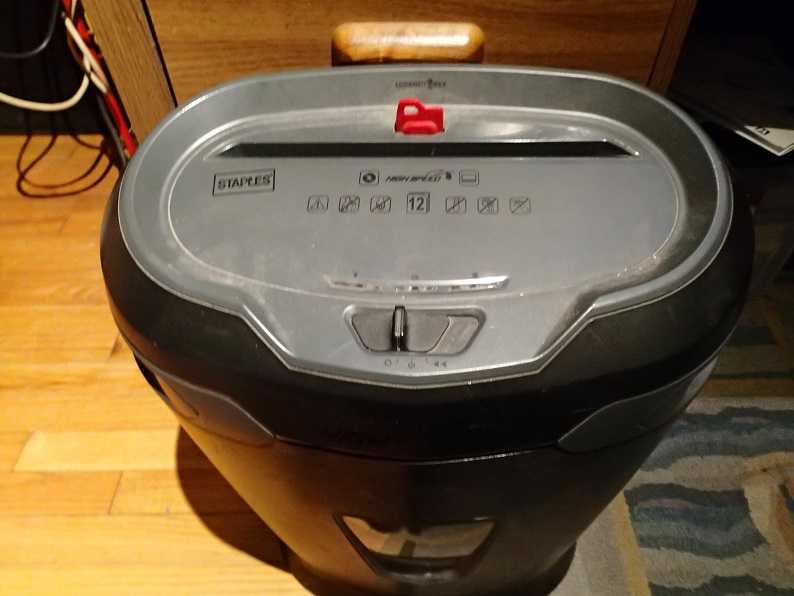 Staples model SPL-TXC122A shredder. Has always worked perfectly, but I'm moving in with my daughter and she already has a shredder. Nobody needs two.