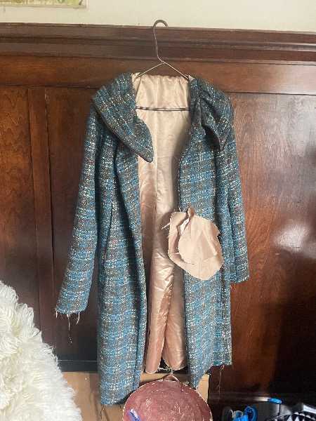 Hi, I have two unfinished sewing projects size 14 (translates to size 10-12 women). One is a long wool teal/white/black plaid coat with gold lining, needs the pockets finished, lining hemmed, buttons/buttonholes and a few more details. I do have pattern instructions and the finishing pattern pieces for this one. One is a hip length gray corduroy jacket with brown piping, needs buttons/buttonholes, collar attached, sleeve lining attached and lining hemmed. I do not have the pattern for this but an experienced sewer would be able to finish it easily. I gained weight and these don't fit me so happy to pass them on to you! Pick up in Point Richmond 5 mins from 580 on Nicholl near Tunnel Ave.