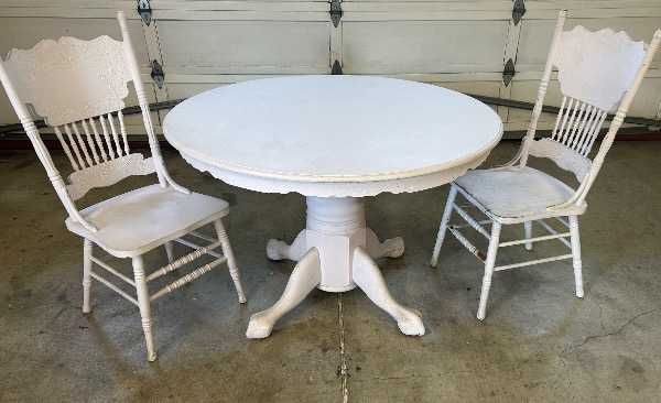Solid wood table and two chairs.