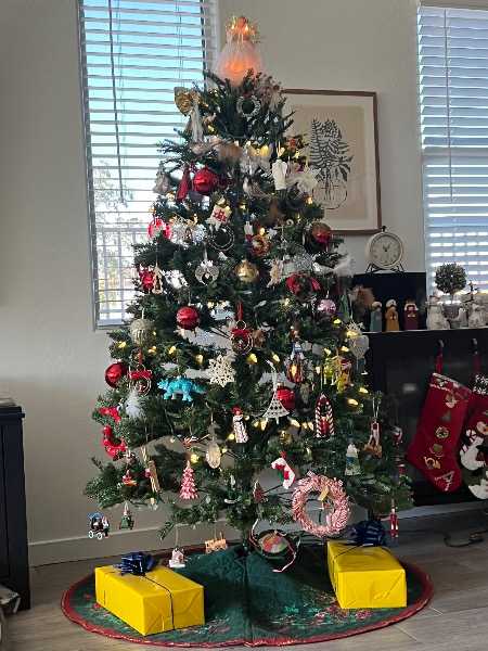 Free totes full of Christmas ornaments and decorations. The tree was loaded. Only most ornaments and extra strands of lights. We minimized this year.