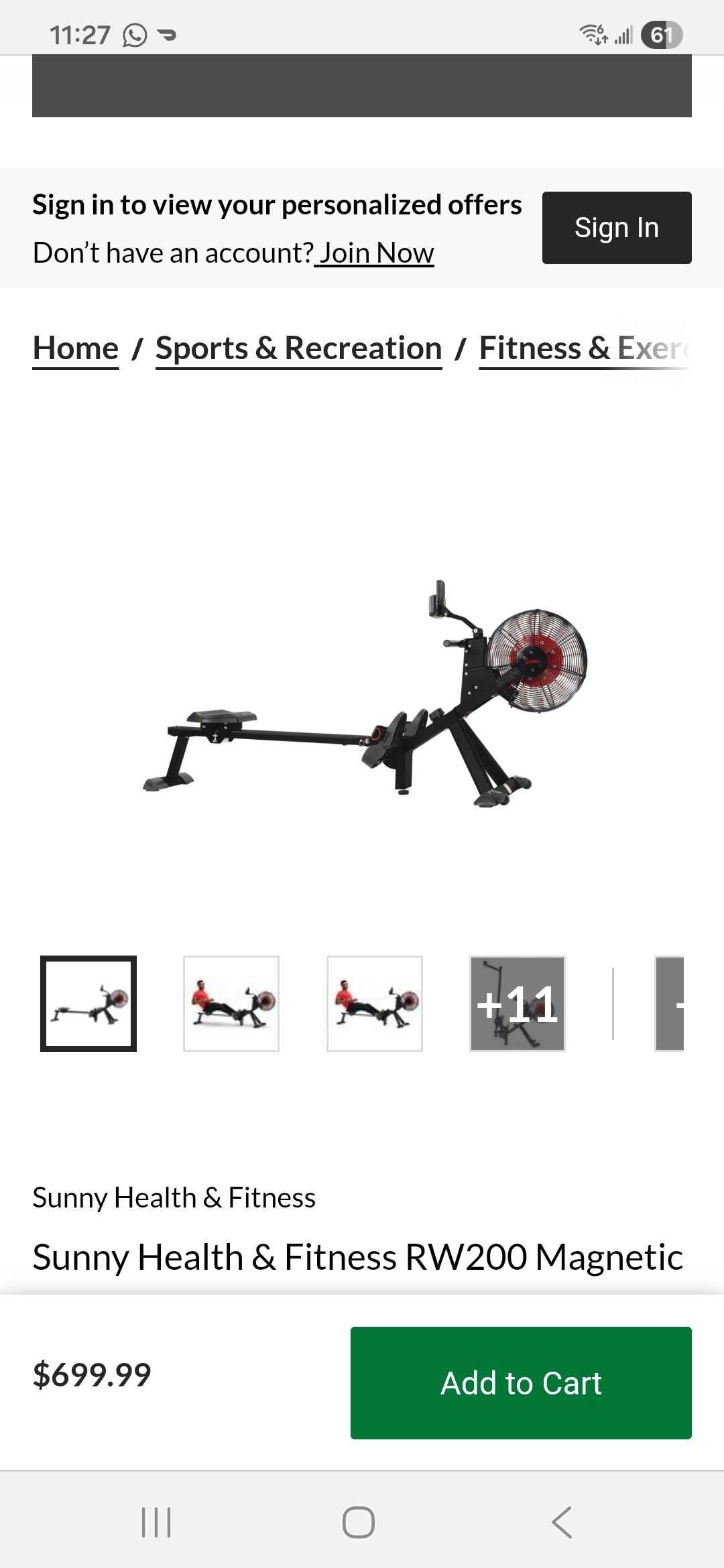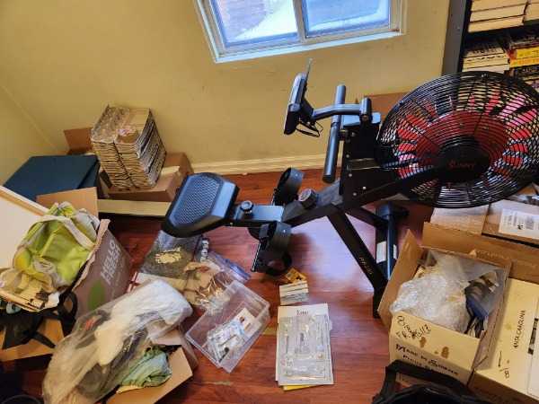 Assembled Sunny RW200 rowing machine. Comes with user Manuel.  Batteries (two AA) not included. Specifications found on Canadian Tire website