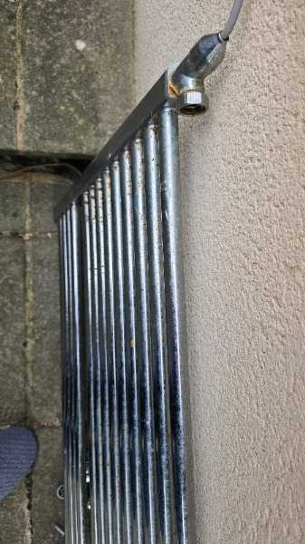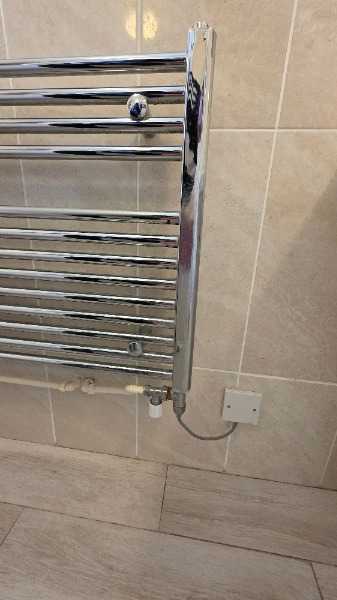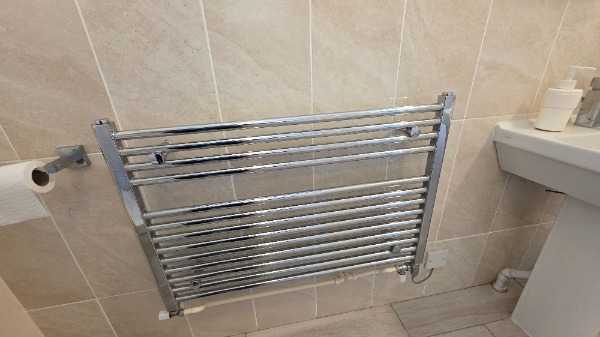 Dual fuel towel rail. Works from central heating or electric element. Needs some cleaning of underside of bars.
