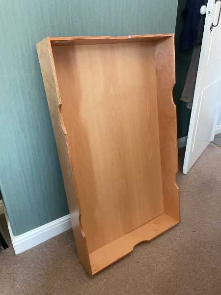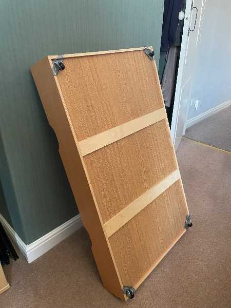 Really good condition, on small wheels to help pull out / push under bed. Measures 15 x 65 x 110 cm