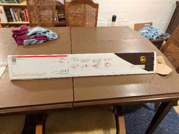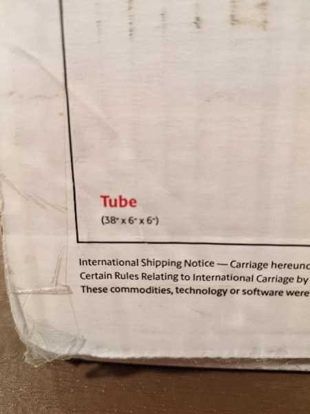 38 x 6 x 6 triangular shipping tube. UPS branding but can be used wherever you want.