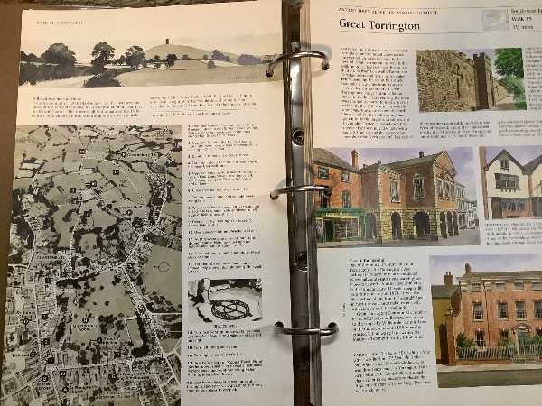 Loose leaf binder with information, including maps, of walks in the British countryside.