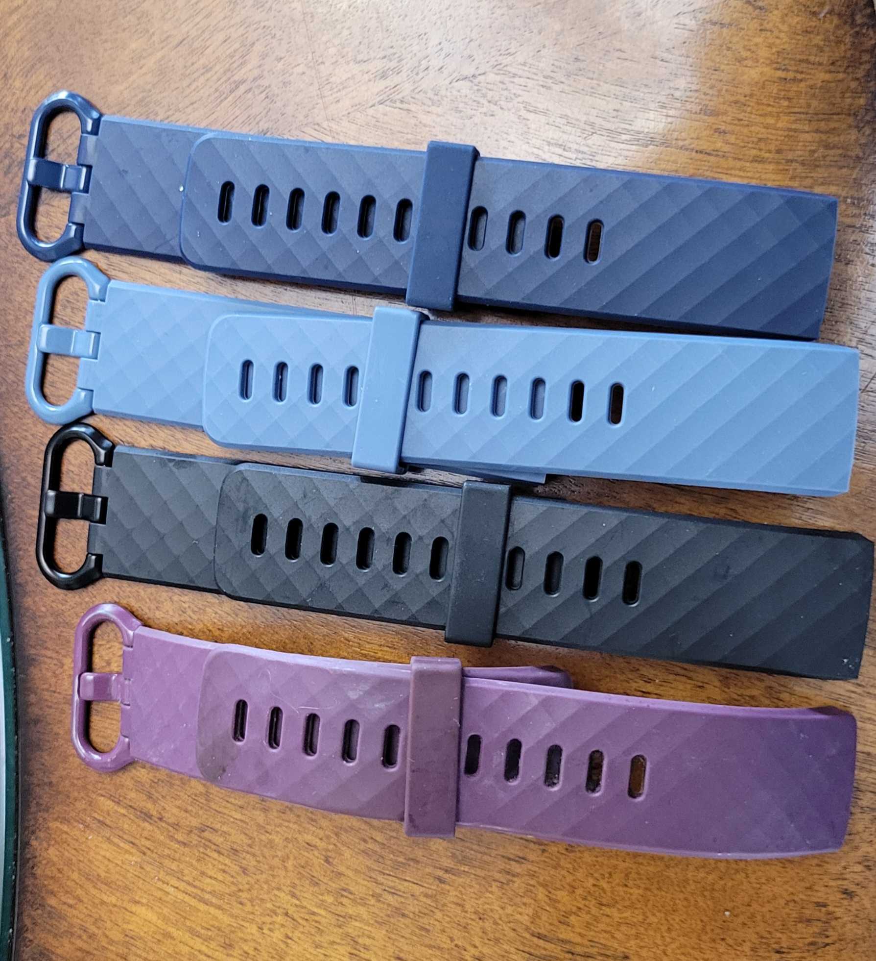4 Fitbit Charge 4 watchbands. Only the purple one has been worn. The rest are brand new.