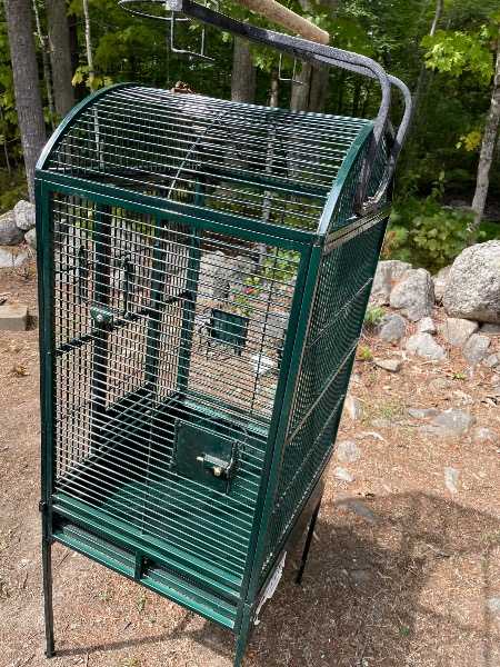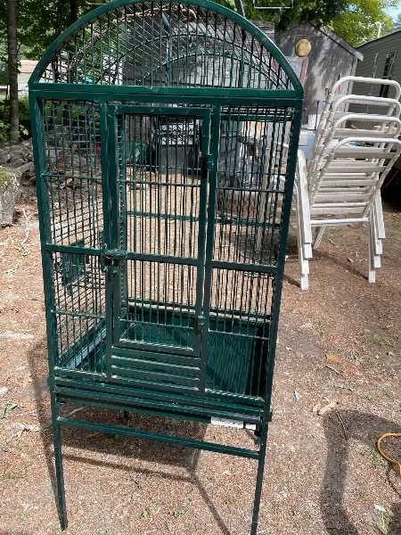 Bird cage best for med sized birds like cockatiels, conjures, amazons etc. size: 31” high, 20” wide and 18”deep. Bottom grate is missing.