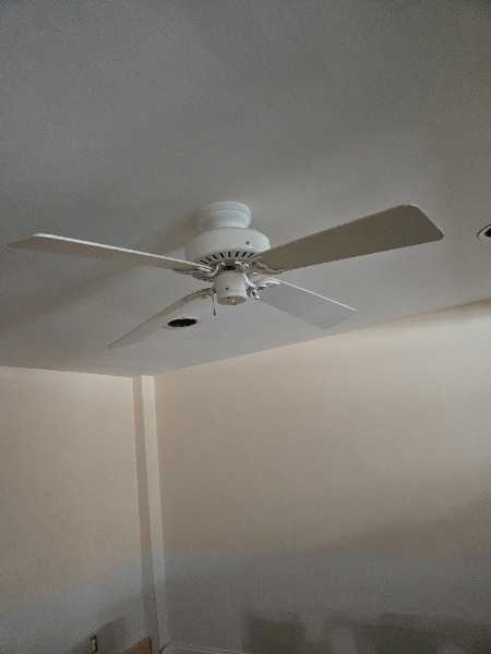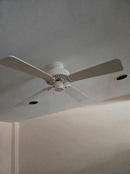 Two 52" white ceiling fans.  Four wooden blades. Note: no lighting included with these.