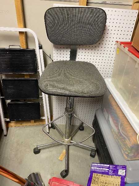 Drafting chair. Seat goes from 23" to 34" high. On 5 casters.