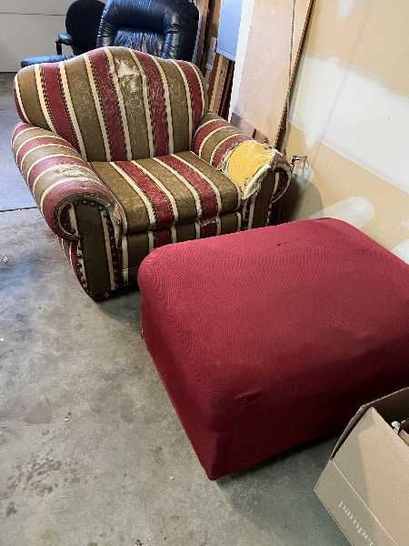 Super comfy chair and ottoman. I hate to part with it but I can't afford to reupholster. You pick up near Plateau and 287.