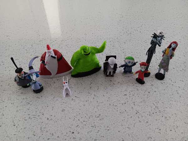 Set of Nightmare Before Christmas figurines, tallest 4" and smallest 1". Porch pick up.