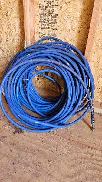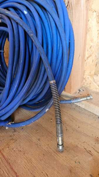 As in pictures.   I'm not sure what type of hose it is.Perhaps it's like a power washer hose.