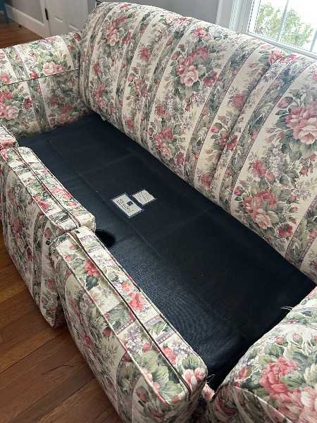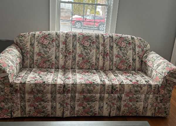 In like new condition but outdated floral pattern. Heavy to move cuz it's a sleeper with newer queen mattress.