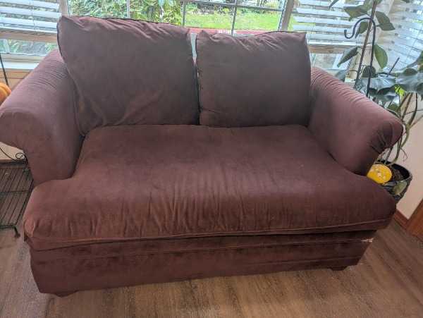 1 love seat/sofa bed. 58" wide. Because of surgery I am not able to deliver.