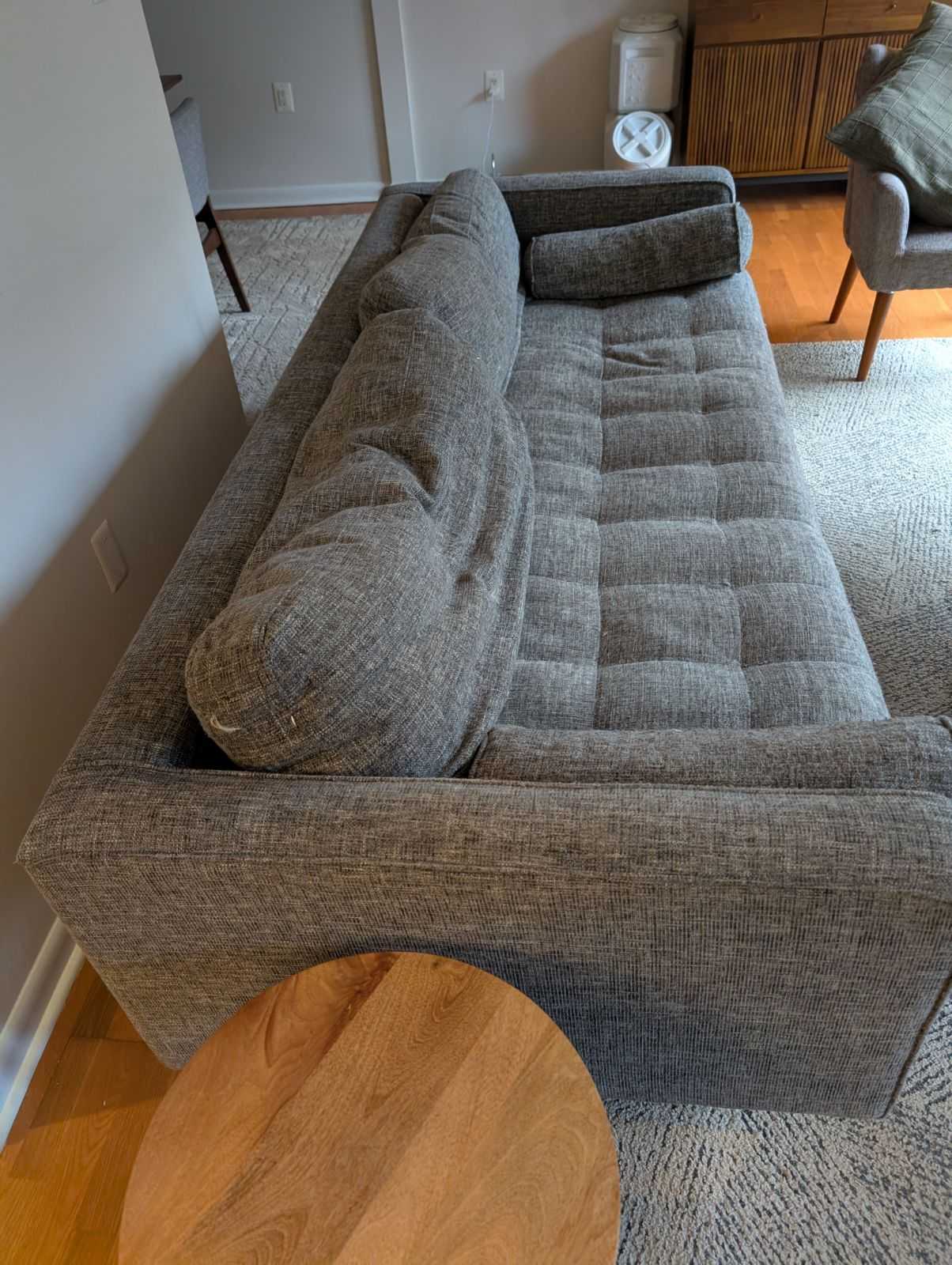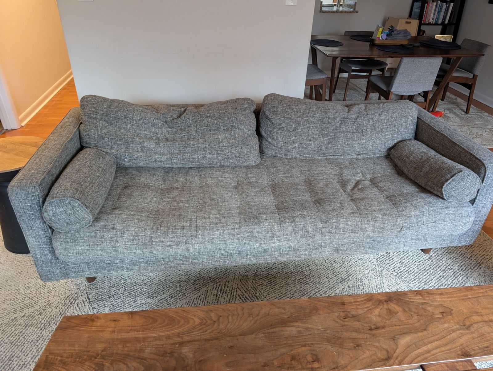 Well-loved Article Sven sofa (pet- and kid-friendly home). 37" deep, 87" long. Available for pickup today 2/21.