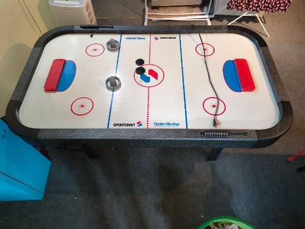Blower works but is not powerful, you may need to work on it or replace it, or wax/condition the surface. Currently a hard hit puck will go to one and end rebound some but it's not frictionless.