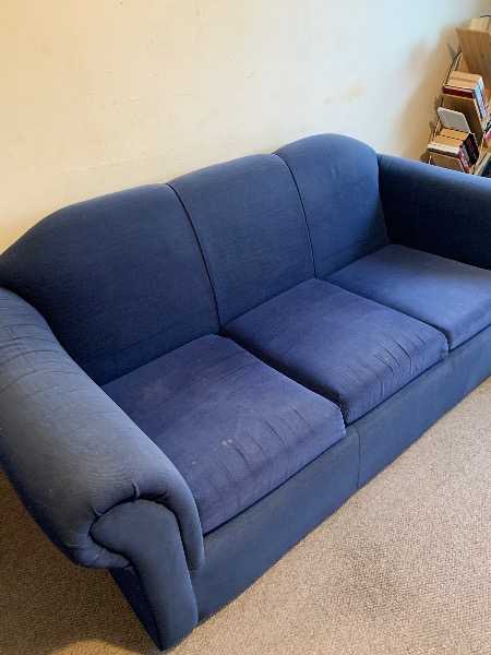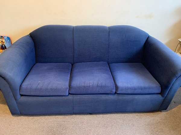 ?️ Blue 3-seater sofa, good condition,  only one wheel is broken