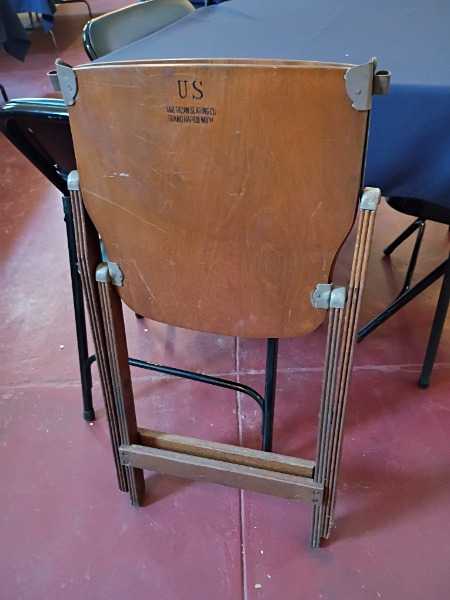 Lot of 30 American Seating Company wooden folding chairs Grand Rapids, Michigan Stamped “U.S. – American Seating Co.”
