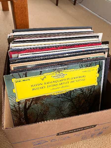 2 boxes classical music LPs, some rare! Records, jackets and liner notes in good condition. Please commit to taking at least one box (just don't dump in landfill!). thanks