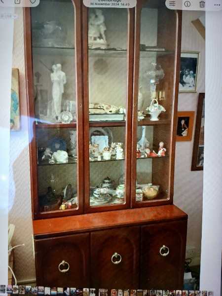 Tall display cabinet, glass fronted.  Comes in two sections, upper and lower.
