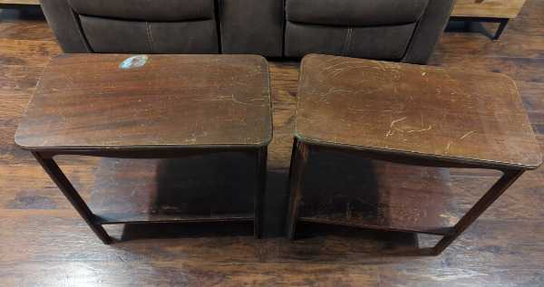 I've held onto these for several years, but just don't have a place to use them in our house. They're fairly well scuffed up, and a little wobbly, but fully intact. They would be excellent candidates for someone with the necessary skills to refinish.