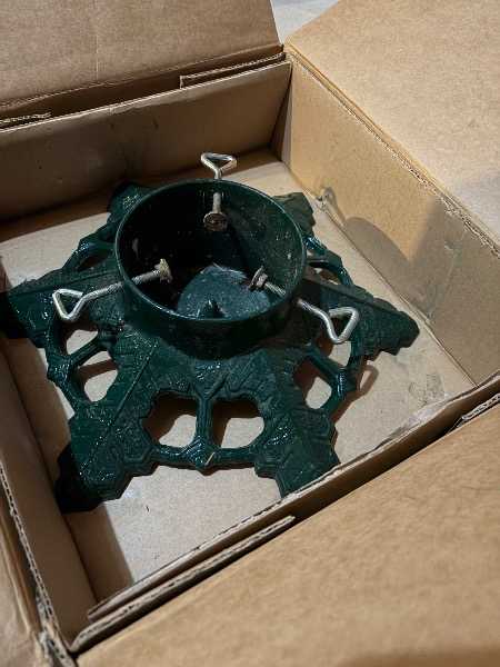 Very pretty green, heavy metal Christmas tree stand for live tree.