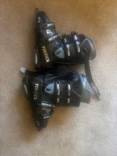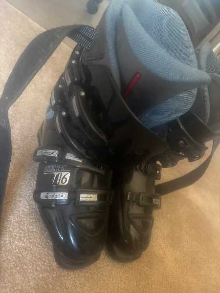 Think ahead:) - after this winter we are dues for a good.  Black ski boots, marked size  6,5/40 Eu 40 is US women 9 Pick up near middle school. See pics
