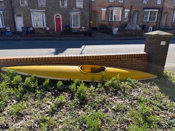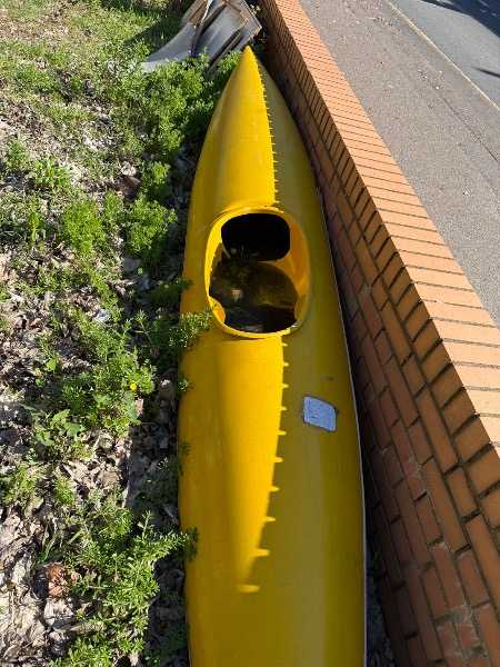 This kayak has been in the garden for years, unfortunately it's sitting upward so it's now full of water and will need emptying.  Not sure if there are any holes, free to collect.