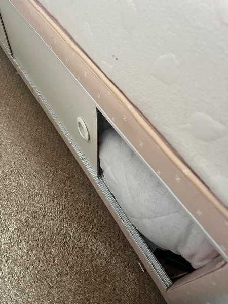 Single bed with headboard and under bed drawer storage plus 2 single mattresses