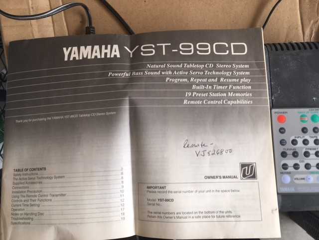 This is a used Yamaha model YST-99 CD table top stereo system. It has a remote with it and includes the original operating manual. I cannot get it to work, could be a dead battery in the remote or a bad IR reader. If you like to tinker with electronics this would be worth messing with.