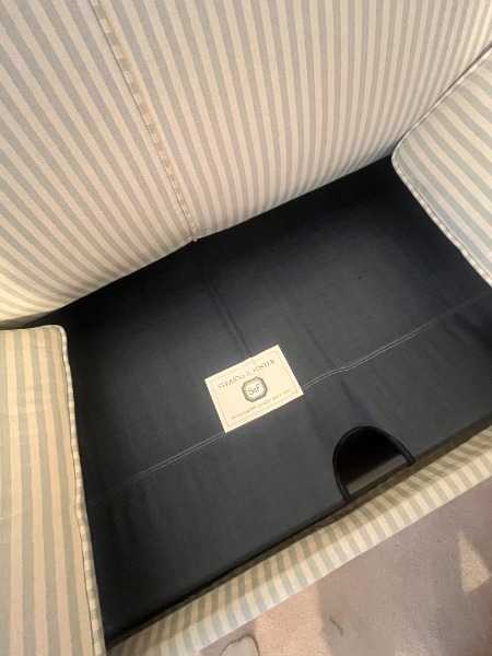 Blue striped loveseat with pullout matress. Well loved so not the most firm anymore, but okay shape (pet free/smoke free home). Around 70in long.