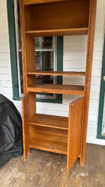 This is cabinet was made by a woodworker/artist with an eye for wood grain. It needs a light sanding and oiling. Measurements are: 35 3/4 w X 7'3" h X 15 1/2"d. The largest opening measures 34" wide in the back.