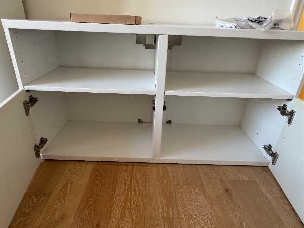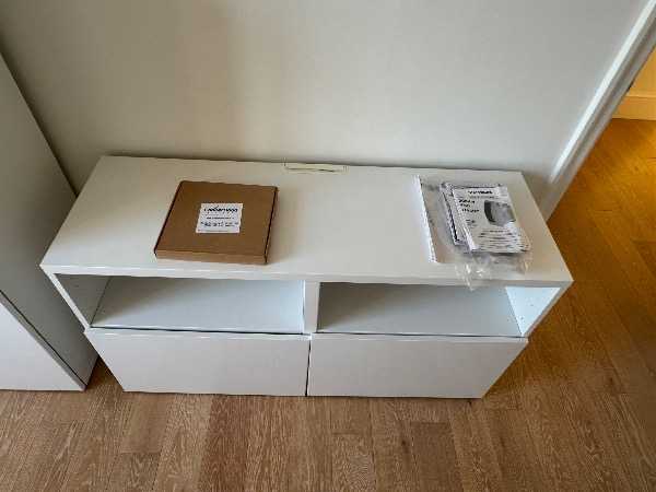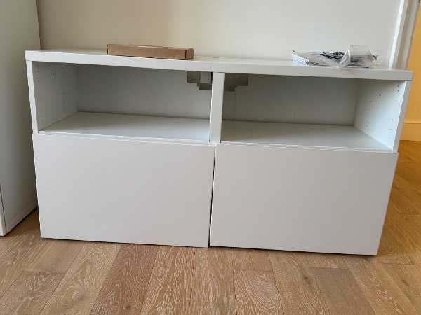 IKEA white TV unit with drawers.