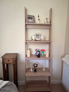 Wall unit 1.96m high by 60cm wide. We live in a flat so there are a few outside steps and one set of very wide steps inside.  Does not include the items on the wall unit.