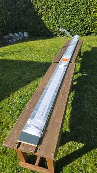Green kitchen plinth/kickboard - still in original wrapping.... one end uncovered to show colour..... 3.1m long by 15cm by 1.8cm.... could also be used for shelving?..